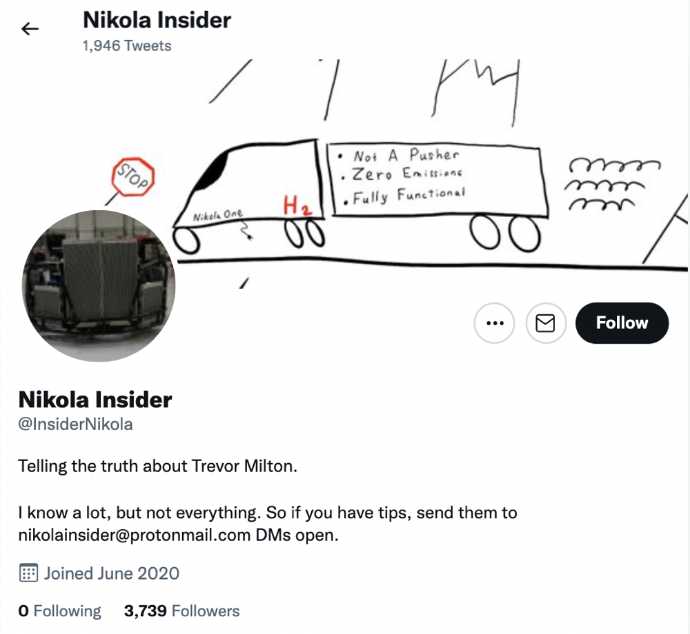 尼古拉的前員工保羅·萊基建立了一個推特賬户—@InsiderNikola,在上面發表反擊米爾頓的故事。