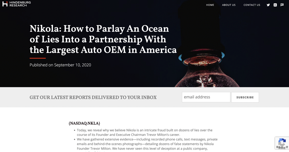 ▲2020年興登堡研究發佈對尼古拉的做空報告