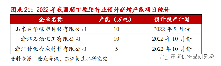 截至2021年我國順丁橡膠產能在148萬噸左右。22年我國順丁橡膠產能或較21年增加25萬噸左右,新增產能投產集中在三季度末和四季度。
