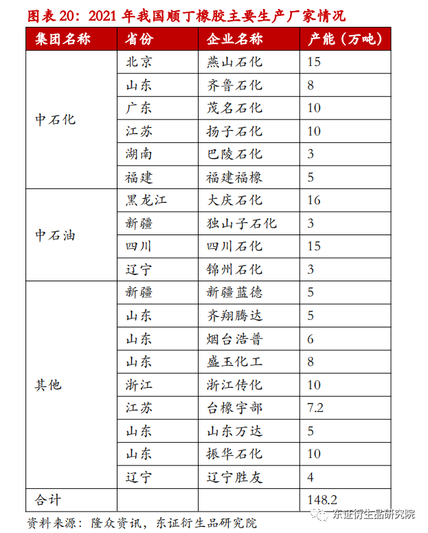 需求:主要應用輪胎生產,常與天膠並用改善膠料性能