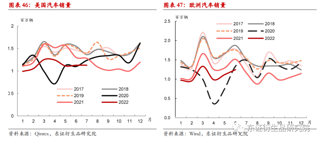 值得注意的是,儘管我國輪胎出口自21年以來表現較為景氣,但主要是因為我國輪胎產品性價高,加上海外疫情嚴重凸顯我國產業鏈優勢。從海外需求本身看,21年下半年開始海外汽車行業持續遭受芯片短缺的影響,行業生產受阻,渠道庫存降低,消費需求被抑制。今年以來,芯片短缺問題尚未得到根本解決,俄烏衝突又加劇了汽車芯片供應偏緊局面,海外汽車產銷維持低迷態勢。目前影響外需復甦的關鍵仍在於汽車芯片供應,只有在芯片供應短缺問題逐步得到解決后,海外汽車產業鏈纔有望進入補庫存階段。在此之前,輪胎外需預計將持續受到壓制。
