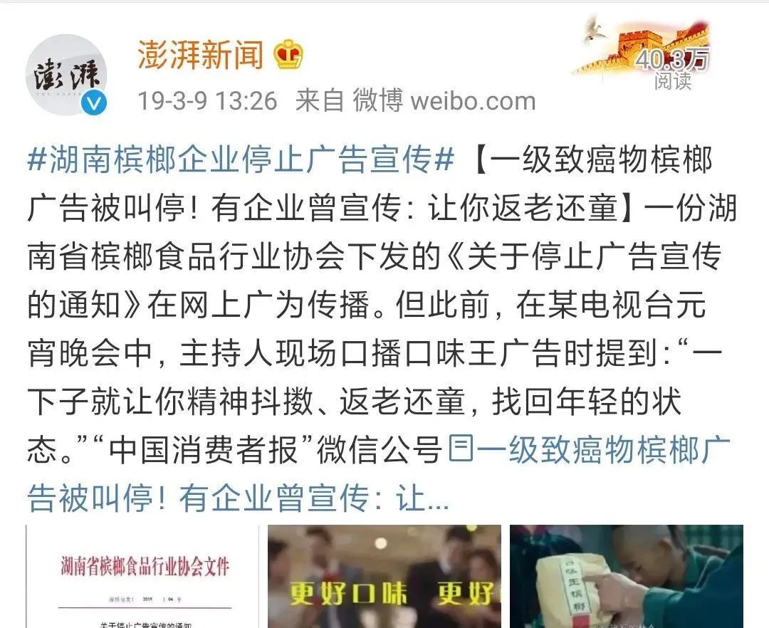 其次,禁止檳榔在公共電視或網絡平臺投放廣告,線下户外平臺也禁止檳榔進行廣告宣傳,阻斷檳榔的品牌推廣和用户拓新。