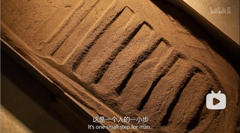 《流言終結者》節目實驗:在真空環境中的模擬月壤上可踩出清晰的腳印。