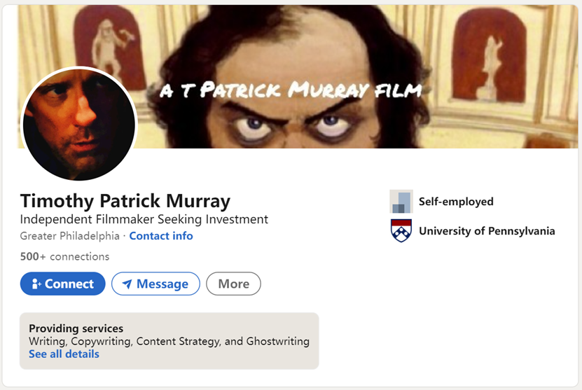 莫瑞的領英主頁顯示其為獨立電影製作人。