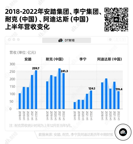值得注意的是,安踏2022年上半年以260億營收成為中國運動市場第一,這個數字超過了今年的耐克,但還沒追上耐克在去年同期的成績。