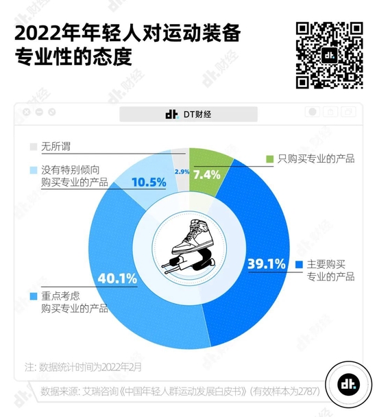 他們一方面要求專業,艾瑞諮詢的調研數據表明,近9成的消費者在購買時會傾向選擇專業的產品,7.4%的年輕人只購買專業的產品;另一方面,運動裝備也要體現生活方式和時尚態度。