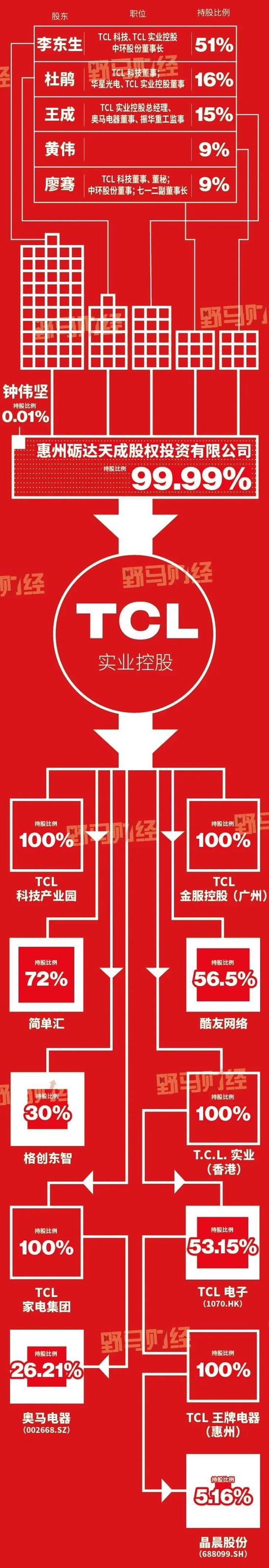 除了去年通過TCL控股成功入主奧馬電器外,李東生還通過TCL控股控制TCL電子(1070.HK),並曾通過TCL電子全資控股的TCL王牌電器(惠州)參股晶晨股份(688099.SH)5.16%股權;TCL控股參股的新新零售二期參股蘇寧易購(002024.SZ,現ST易購)的混改。