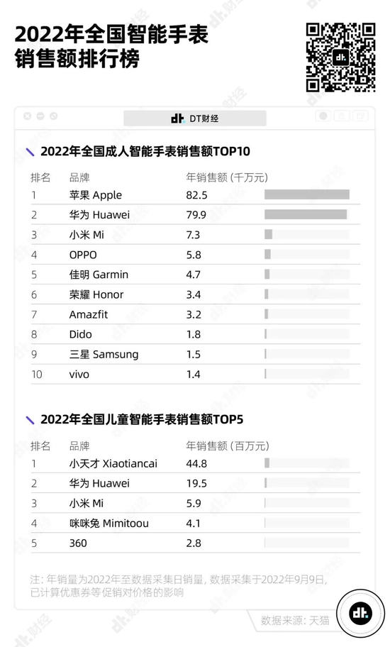 換手機的人越來越少,導致智能手機市場持續走低。但另一面,智能手錶的市場不斷擴張。Counterpoint 數據顯示,2022年第二季度全球智能手錶出貨量同比增長了13%,而在中國,智能手錶銷量同比增長了48%。