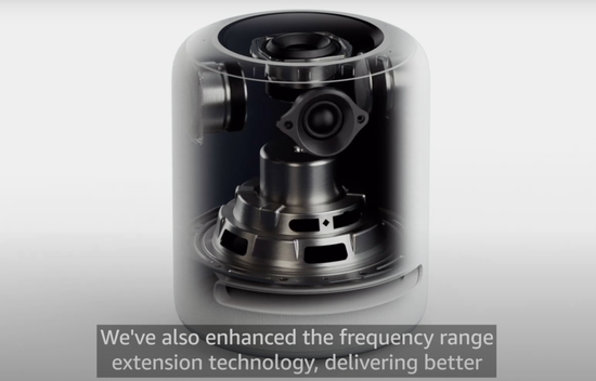 亞馬遜重點優化了Echo Studio的整體音頻體驗,增強了空間音頻技術(Spatial Audio)並升級音頻範圍,包括提高中音清晰度、加深低音等。