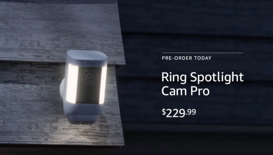 亞馬遜智能攝像頭品牌Ring還推出了Ring Spotlight Cam Pro,能夠監控用户院子里人體移動的位置,如快遞員在用户院子里走動時。該設備支持有線供電、電池供電和太陽能功能,售價爲200美元(摺合約1440人民幣)和230美元(摺合約1656人民幣)。