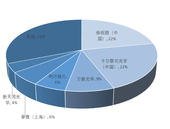 2020年中國鏡片行業市佔率,以銷售額計