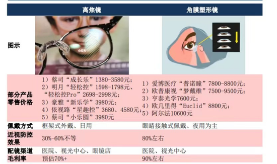 一方面,離焦鏡無需與人眼直接接觸,佩戴舒適且安全性較高,而且離焦鏡性價比高,基本在1380-4580元之間,明顯低於OK鏡動輒上萬的單價;