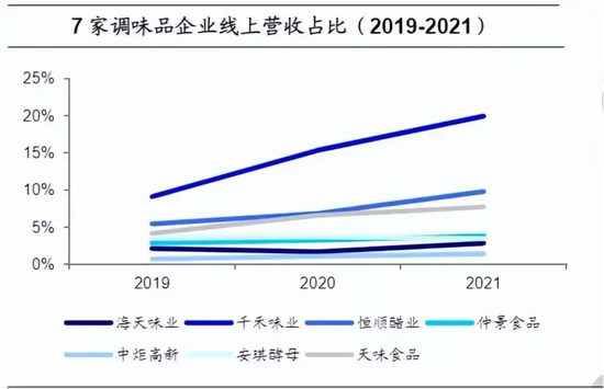 在電商行業如火如荼之際,海天味業依然重金砸向線下實體店,線下渠道銷售成為海天賴以生存的生命線,但近兩年來因為疫情的影響,線下消費明顯弱於線上消費,尤其是在社區團購、生鮮電商的激烈競爭下,線下渠道更是遭受巨大沖擊,社區團購佔調味品銷售額的比重已高達10%。