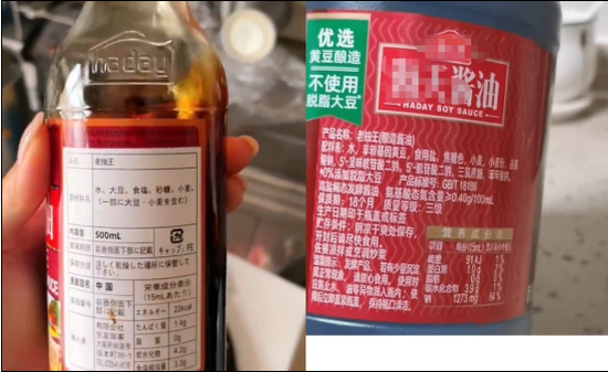 網絡短視頻曝出海天醬油的配料表問題,BT財經專門去商超實地作了探查,發現中國國內商超中海天醬油的配料表中是有谷氨酸鈉、呈味核苷酸二鈉、肌苷酸二鈉、苯甲酸鈉、三氯蔗糖等化學成份,在諮詢食品行業業內人士后確定這幾種化學成分為添加劑、增味劑和甜味劑。