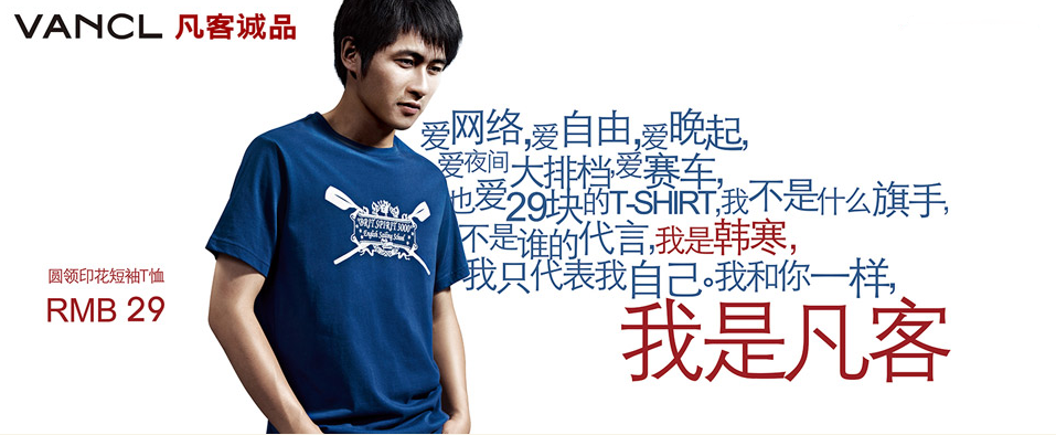韓寒和王珞丹的代言海報鋪天蓋地,「我是凡客」引發互聯網造句狂歡,文藝中帶着幾分不羈,配合日系風的產品,熱度和今天的瘋狂星期四有一拼。