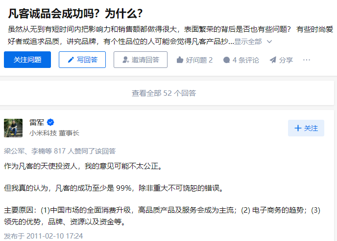 雷軍曾開玩笑説這輩子最倒黴的就是投了凡客,以后只能穿凡客的衣服了,這話遠不能形容雷軍對陳年的偏愛——那可是真金白銀加心血的偏愛。