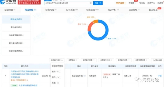 對於脈脈而言,此類事件過於常見。天眼查數據顯示,2017年至今,脈脈涉及法律訴訟68起,其中57起,身份為被告,佔比73.1%,案由大多是網絡侵權責任糾紛與名譽權糾紛,這些糾紛大多起於社區內容。