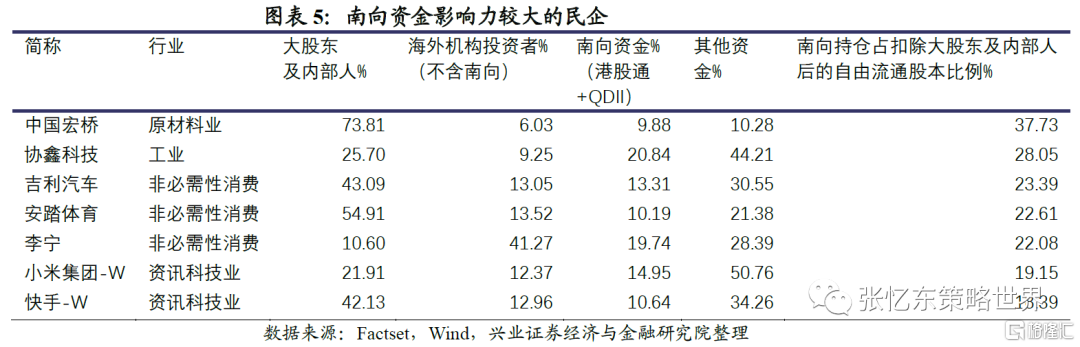 3、 從整體來看,外資對港股的影響力仍然較強。港股市值前100公司合計,南向資金持倉佔港股流通股本比例僅為5.7%(若為港美兩地上司公司,則包含美股股本),海外機構投資者持股佔比為23.3%(並且,由於海外機構披露持倉信息統計不完整,這一數字存在低估)。南向資金佔扣除大股東及內部人持股后的自由流通股本比例僅為9.3%。