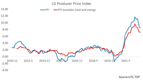 2022年10月12日,美國勞工部勞工統計局發佈報告,儘管聯邦準備理事會致力控制通貨膨脹,美國9月最終需求生產物價指數(PPI)與上月相比上升0.4%,市場預期上升0.2%,8月環比下降0.1%;與去年同期相比上升8.5%,市場預期上升8.4%,扣除食品和能源的最終需求PPI,與上月相比仍上升0.3%,符合預期,8月與7月相比上升0.4%,與去年同期相比,上升7.2%,市場預期上升7.3%。扣除食品、能源和貿易的最終需求PPI,與上月相比上升0.4%,與去年同期相比上漲5.6%。