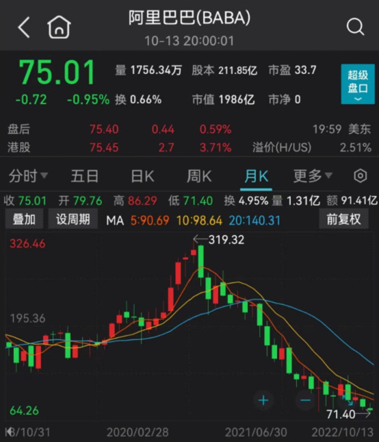 最新報告顯示,截至9月30日,每日期刊持有阿里市值2399.7萬美元,環比跌32.35%,平均成本為185.71美元,而截至10月13日收盤,阿里報75.01美元,今年以來累計下跌36.85%,估值重返歷史底部。