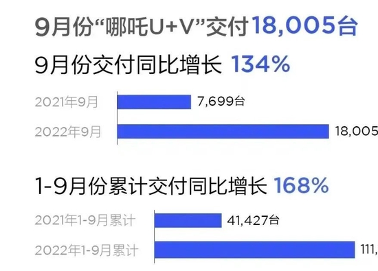 9月哪吒汽車交付了18005輛新車,環比增長12.4%,同比增長134%,同時實現了連續27個月同比增長,交付量位居首位。