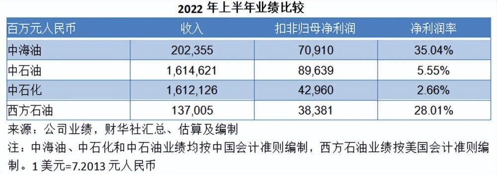 就按中國會計準則編制的2022年上半年業績而言,中海油的扣非歸母淨利潤率達到35.04%,而中石油和中石化分別只有5.55%和2.66%。