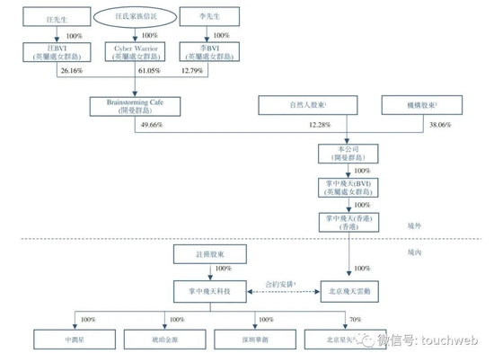 招股書顯示,飛天雲動在上市前的股東架構中,控股股東為汪磊、李艷浩,為一致行動人,合計持股49.66%;其他8名自然人股東,持股12.28%:此外,機構股東,包括同創偉業、軟銀賽富等合計持股38.06%。