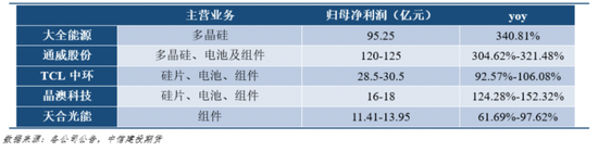 而剛宣佈下場做組件的「硅料龍頭」通威股份,更是以超200億的淨利潤,以及2.6至2.67倍的高增速脫穎而出。