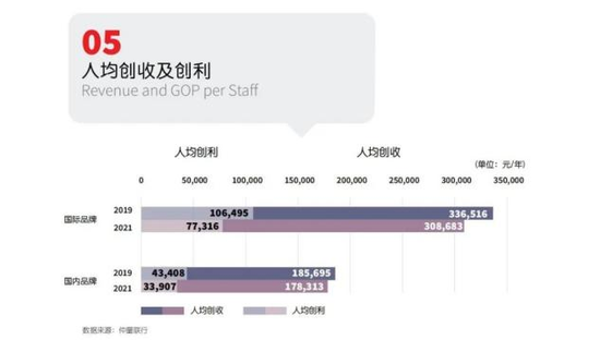 仲量聯行發佈的《酒店行業白皮書》顯示:國際品牌酒店的經營毛利率,已經從2019年的23%,下降到了2021年的20%;而其人均創利能力,也從2019年的人均106495元,下降到了2021年的77316元。經營壓力之下,國際大品牌酒店,選擇了降價的經營策略。