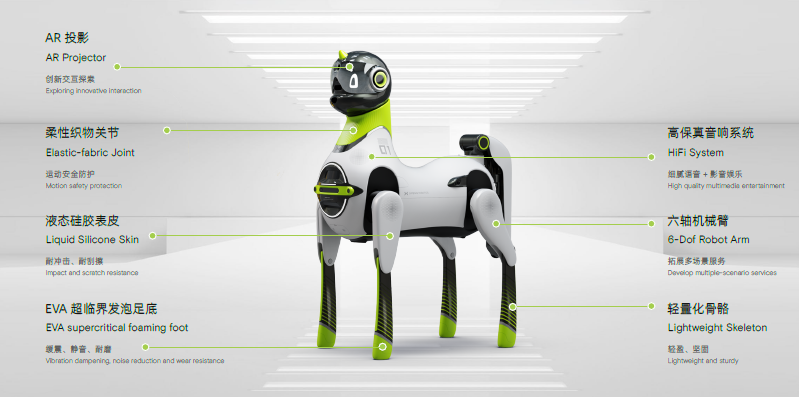 除造型升級外,「小白龍」也迎來架構升級。身體及腿部的「骨骼」借鑑了汽車領域的輕量化設計思路,相比初代更堅固,且更輕盈;新一代AI計算單元與智能汽車同代算力,大幅提升機器人智能潛力;同時,它還配備了高保真音響系統帶來細膩語音及影音娛樂享受;當然,最顯著的一點是,升級后的「小白龍」搭載6軸協作機械臂,與四足底盤協作,可執行家居環境下的多種功能,大幅提升了機器人與物理環境交互的潛力。