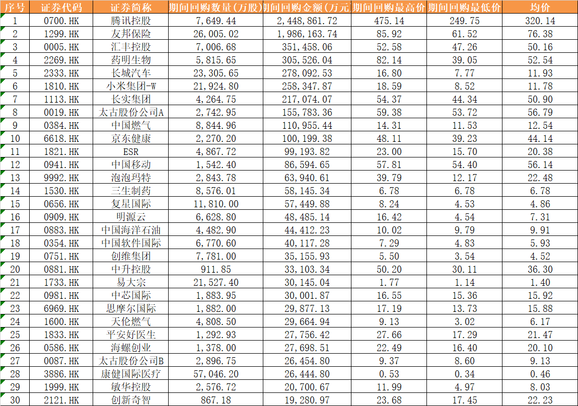 南向資金不斷加持外,騰訊加碼回購成爲了今年至今為止的港股回購王。截至10月25日收市,騰訊今年已經累計回購約245億港元,回購數量達約7650萬股,平均回購價格為320港元。由於臨近業績披露節點,根據港交所規定,騰訊已於披露業績前30天暫停回購。