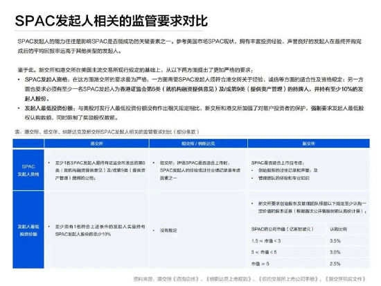 ▶發起人最低投資份額:與美股對發行人最低投資份額沒有作出相關規定相比,新交所和港交所加強了對散户投資者的保護,強制要求發起人最低股權認購數額,同時限制了獎勵股權數額。