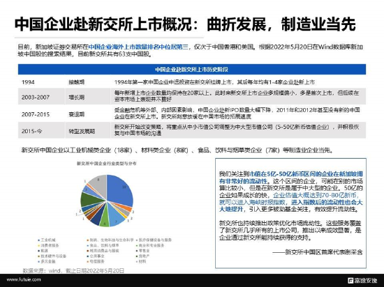 從中國企業與新交所的接觸階段來看,經歷了四個階段。 從1994年第一家中國企業中遠投資在新交所掛牌上市,雙方開始接觸。其后每年均有1-4家企業赴新上市。在2003-2007年,每年新增上市企業數量均保持在20家以上。此時來新交所上市企業多規模偏小,多是首次上市,但后續在資本市場上表現並不算好。2007年后,受金融危機等外部、內部因素影響,中國企業赴新IPO數量大幅下降,2011年和2012年甚至沒有新的中國企業在新交所上市。新交所也刻意放緩在中國市場的拓展速度。2015年至今,新交所改變策略,將重點從中小市值公司調整為中大型市值公司(5-50億新幣估值企業),並積極恢復與中國市場的溝通。中國企業「上新」也煥發新生。