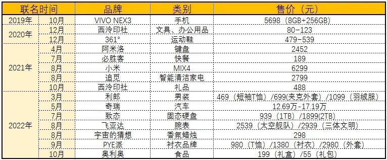 較早 的商業聯名合作,是2019年10月VIVO NEX3 5G推出的500套限量禮盒,附贈《三體》手機殼、銅版書籤和定製筆記本。