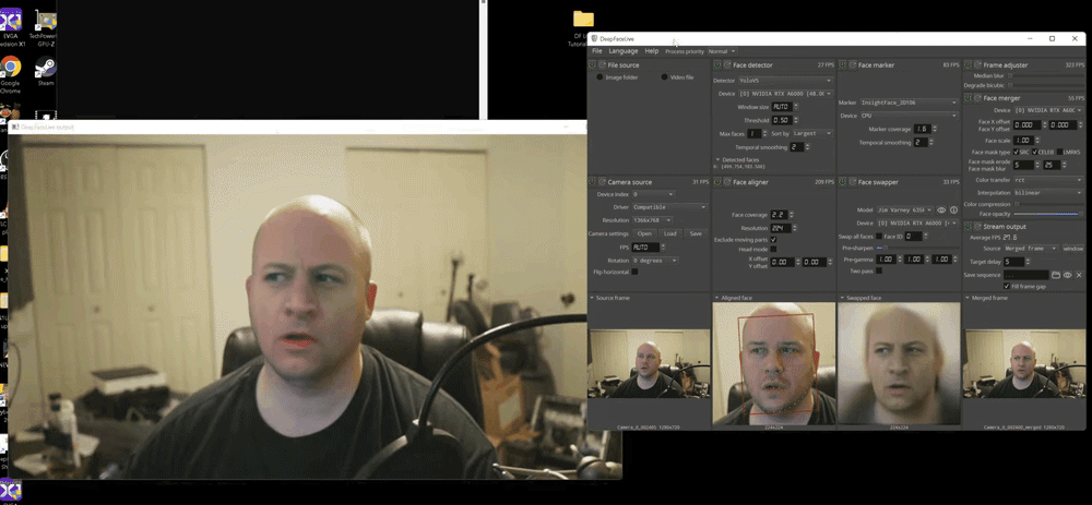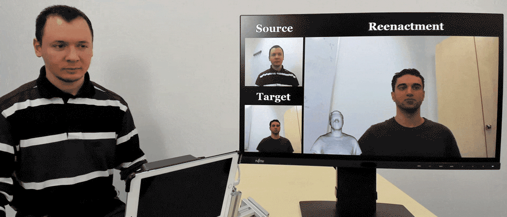 而經過NVIDIA RTX 3090 Ti長時間(數小時甚至數天)訓練的AI模型,可以做出相當以假亂真的效果。可能只有在認真反覆的觀看下,纔會發現:誒?剛剛這個人額頭的皺紋是不是在閃?