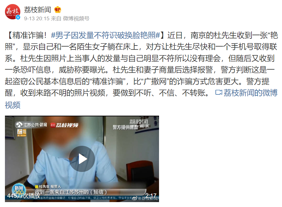 偽造人臉盜號、轉賬的新聞不在少數,今年8月,就有兩名犯罪嫌疑人因使用手機軟件製作人臉識別動態視頻,並「偽裝」登錄他人的網絡賬號盜取資金而被警方抓獲。