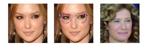 在一篇圖像識別領域的經典文獻中,研究者通過數學運算設計了一種特定的「眼鏡」(中圖),戴上就可以讓一個人(左圖)被AI人臉識別認成另外一個人(右圖)。