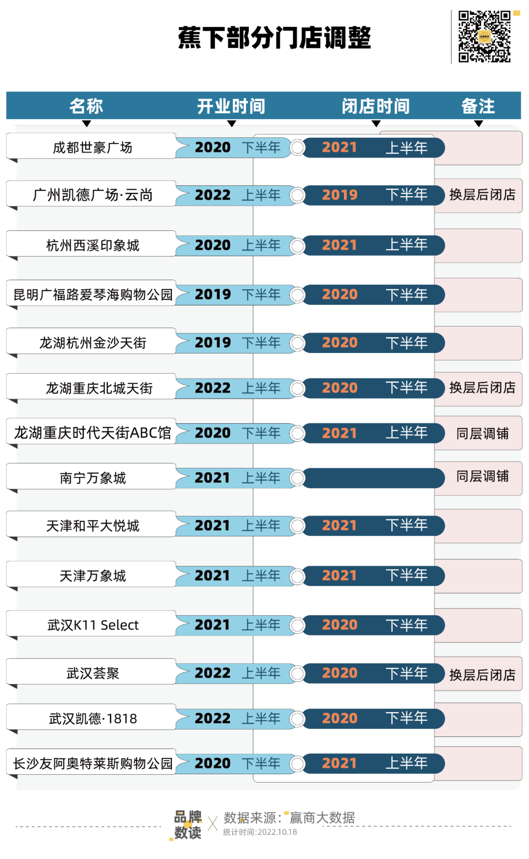 劇烈的開關店並不能概括事情的全面,蕉下曾試圖調換鋪位來延長門店壽命,也有門店在調改之后仍難逃關店的命運。