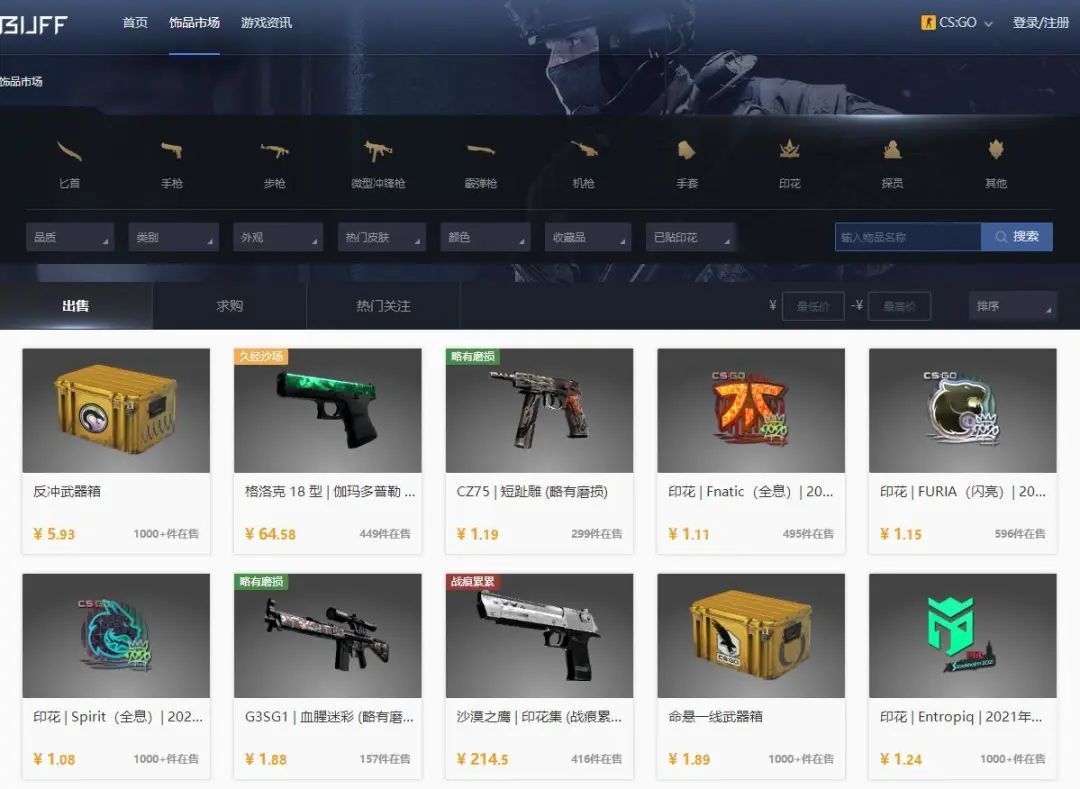 所謂遊戲飾品,就是遊戲中的武器皮膚、裝飾貼紙、人物外觀等虛擬道具。儘管只是虛擬裝飾品,但它可以自由交易,因此具備了一定投資屬性。許多投資者瞄準了這一市場,他們低買高賣,財力雄厚者甚至能通過自己的交易操控市場,成為「莊家」。