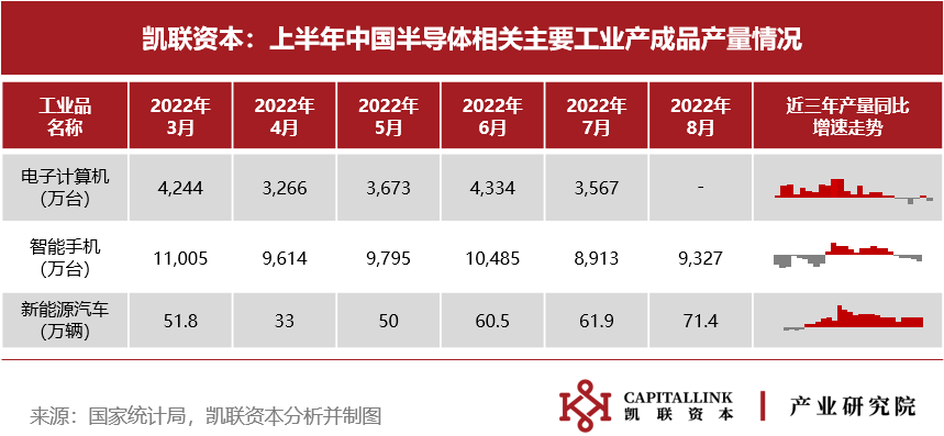 反觀新能源汽車產量增長正值勢頭,同比增長超過100%,成為半導體需求增長的主要動能之一,推動半導體需求端結構持續分化。