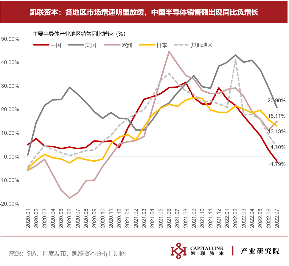 新一輪出口管制下,國外半導體企業先進終端產品在華銷售範圍進一步受到限制;預計2022年下半年中國地區銷售增速將進一步放緩。