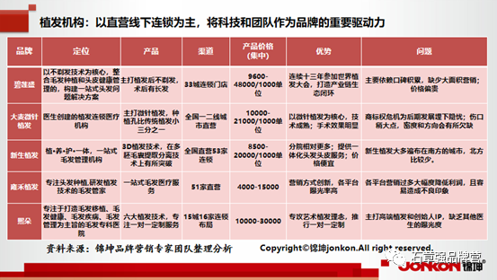 科技植發機構是目前頭發頭皮中發展較為年輕但勢頭正猛的類別。目前各大植發類品牌多以技術為核心驅動力,同時兼顧線上線下的品牌營銷,打出品牌聲量。