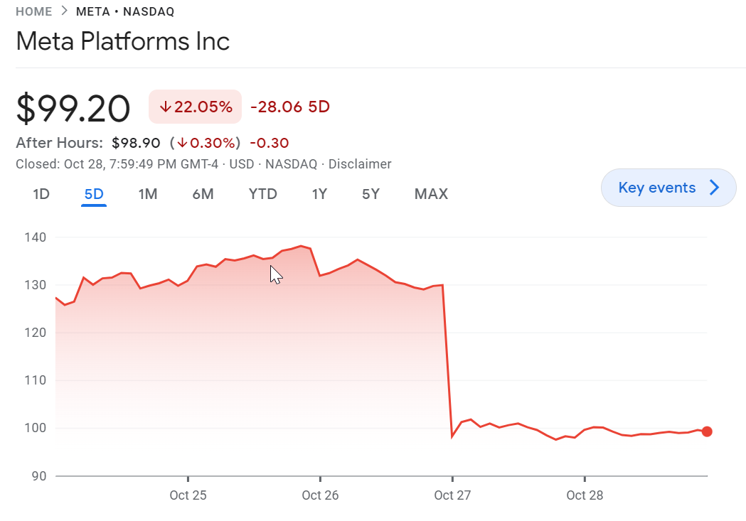 財報發佈后,Meta 股價應聲下跌