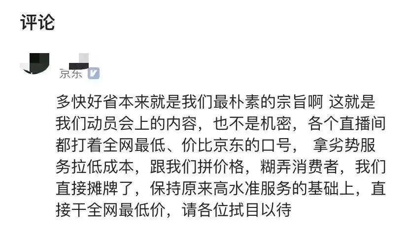無法確認這份發言的真假,但一位前京東員工丁蕾(化名)認為,發言的內容確實一直是京東想要實現的目標。並且,在脈脈相關的討論中,也可以看到另一位京東員工認為這一發言沒有問題。而看到這份發言,恐怕許多人的另一個疑惑是,京東還有低價心智嗎?或者説,京東真的有做到低價嗎?