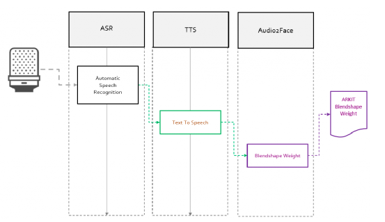 值得注意的是,FACEGOOD主要完成Voice2Face部分,ASR,TTS由思必馳智能機器人完成。 如果你想用自己的聲音,或者第三方的ASR,TTS可以自行進行替換。 當然FACEGOOD Audio2Face部分也可根據自己的喜好進行重新訓練,比如你想用自己的聲音或其它類型的聲音,或者不同於FACEGOOD使用的模型綁定作為驅動數據,都可以根據下面提到的流程完成自己專屬的動畫驅動算法模型訓練。