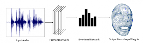 Voice2Face的具體工作原理如下:第一階段,數據採集製作。這里主要包含兩種數據,分別是聲音數據和聲音對應的動畫數據。聲音數據主要是錄製中文字母表的發音,以及一些特殊的爆破音,包含儘可能多中發音的文本。而動畫數據就是,在maya中導入錄製的聲音數據后,根據自己的綁定做出符合模型面部特徵的對應發音的動畫;第二階段,主要是通過LPC對聲音數據做處理,將聲音數據分割成與動畫對應的幀數據,及maya動畫幀數據的導出;第三階段,將處理之后的數據作為神經網絡的輸入,然后進行訓練直到loss函數收斂既可。
