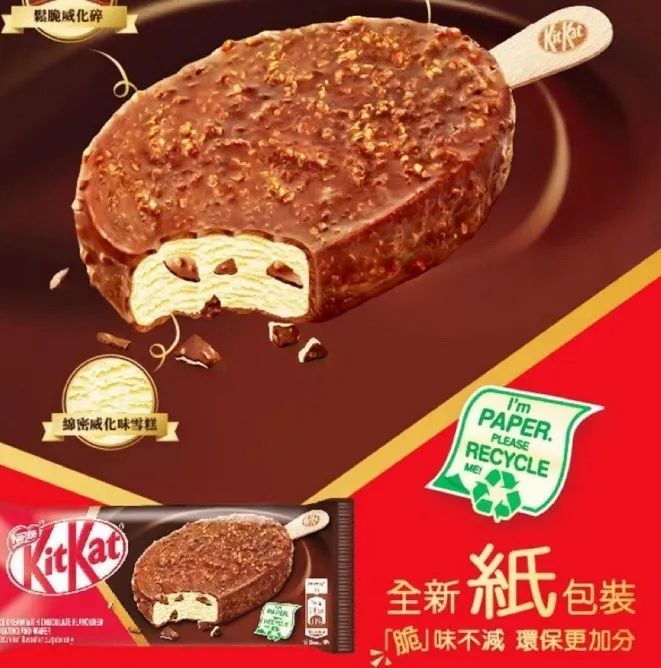 據瞭解,雀巢公司專注於三個核心領域:消除不可回收塑料;鼓勵使用可提高回收率的塑料;消除或改變包裝材料的複雜組合。雀巢已在中國香港地區推出環保包裝奇巧冰淇淋,該包裝由100% 可持續森林認證純紙漿(FSC)製成,旨在減少塑料消耗並提高可回收性。