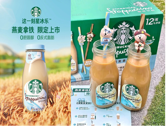 星巴克近期全新上市的明星即飲系列「瓶裝星冰樂燕麥拿鐵」即是全球首發的第一款即飲植物基咖啡飲品,也是品牌踐行綠色環保使命的又一實踐。瓶裝星冰樂燕麥拿鐵的禮盒裝以「有趣+環保」的設計理念,附贈限定款熊店長可循環吸管以及隱藏喝法DIY手冊。