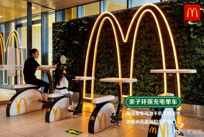 驚喜的是,餐廳內設置了親子環保充電單車,踩動單車即可為手機無線充電並點亮金色拱門logo,環保之余為顧客提供互動新體驗。