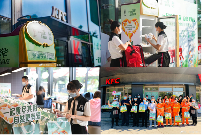 在世界糧食日即將到來之際,肯德基在濟南、青島、福州等多城推出「肯德基食物驛站」,將尚在保質期內的余量食物免費發放給有需要的人;同時推出「一起食盡其用,自然更有愛」主題公益活動,將上千份余量食物愛心禮包送給當地保潔人員、困難羣眾、建築工人、環衞人員等有需要的羣體。